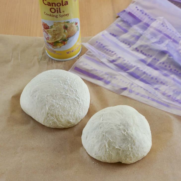 Lightly coat each dough ball with olive oil or baking spray.